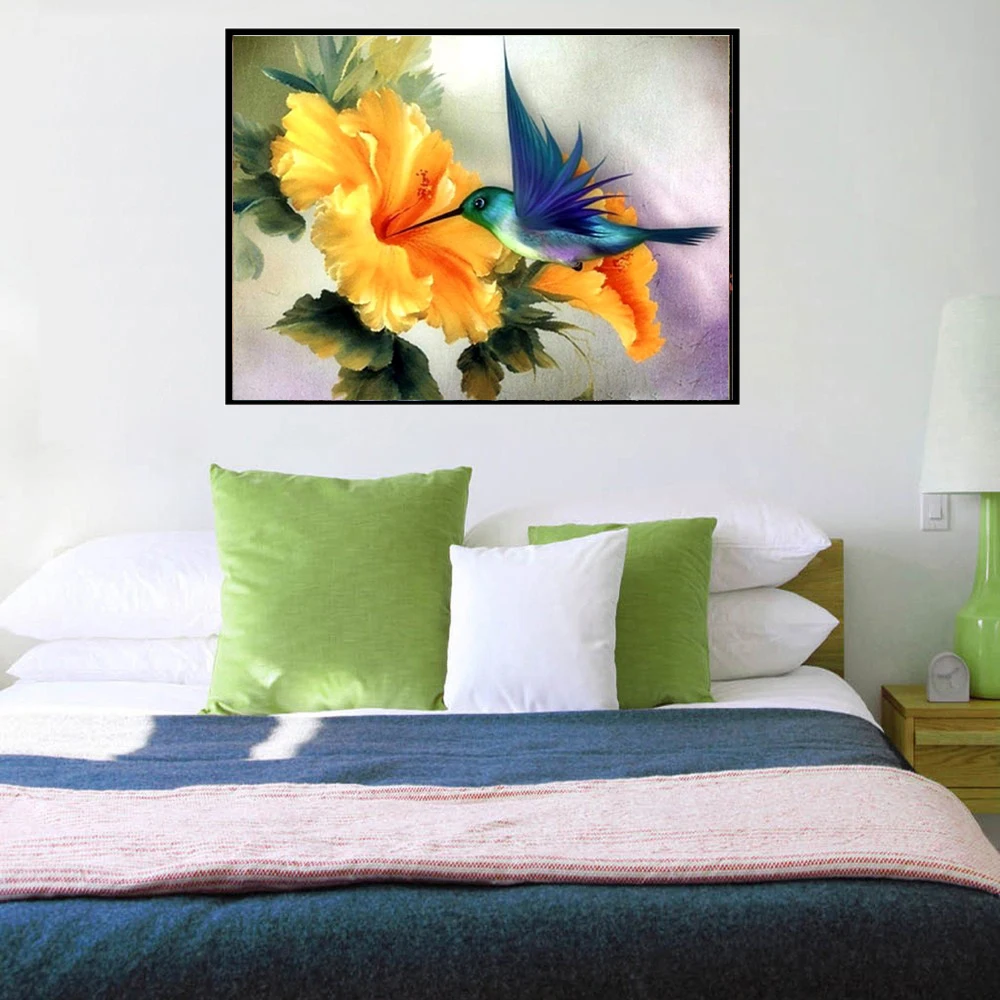 Полный дизайн 5D алмазная живопись птица вышивка крестиком комплект цветок с круглыми бусинами алмазная вышивка украшение дома подарок