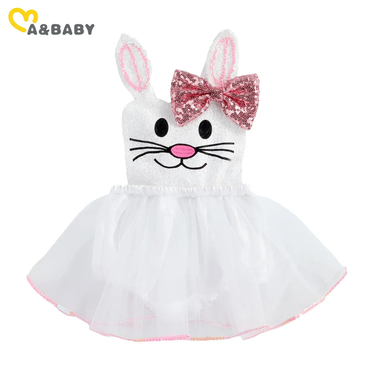 Пасхальный комбинезон Ma Baby для новорожденных девочек, От 6 месяцев до 3 лет, без рукавов, с блестками, с кроликом, комбинезон из фатина, праздничные костюмы, комбинезон с зайчиком