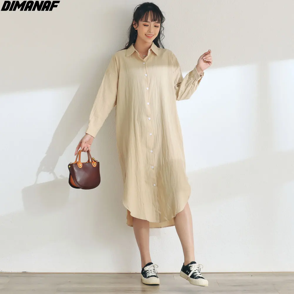 Женская льняная блузка DIMANAF, Свободный Повседневный длинный кардиган из хлопка, в Корейском стиле, для офиса и дома, размера плюс, 2021