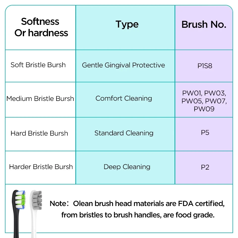 1. Oclean стандартный тип очистки DuPont Tynex Brilliance Pedex треугольная нить2. Каждое поперечное сечение нитей имеет алмазную форму и обеспечивает глубокое очищение, чистоту 20%.3. Пищевой полипропиленовый материал с сертификацией FDA для ухода за полостью рта4. Каждая нить была шлифована как полностью круглой, так и полукруглой.5. Высокая плотность плавления для более высокого уровня чистоты.6.3D разработаны многогранные щетинки с нитью Dupont для обеспечения оптимального уровня чистоты.7. Пищевая соска TPE материал, достаточно мягкий, чтобы очистить язык с покрытием