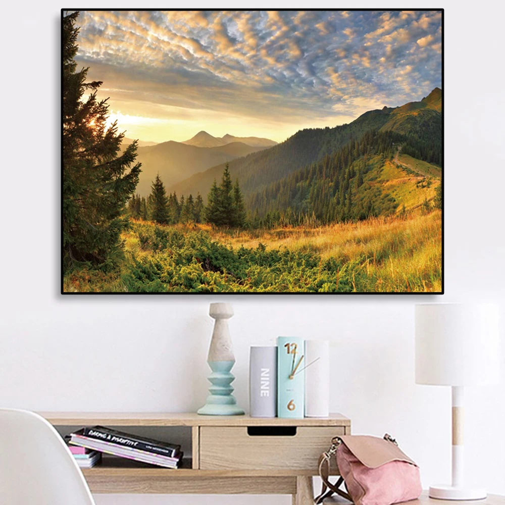 Естественный Закат, пейзаж озера, плакаты и принты, Картина на холс...