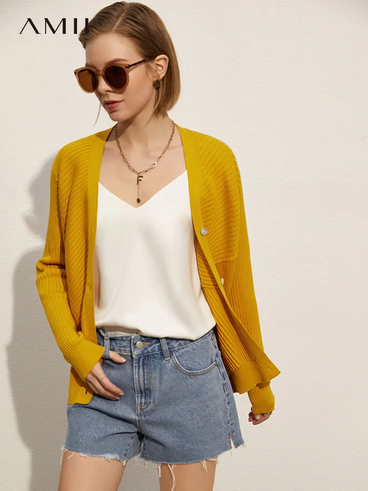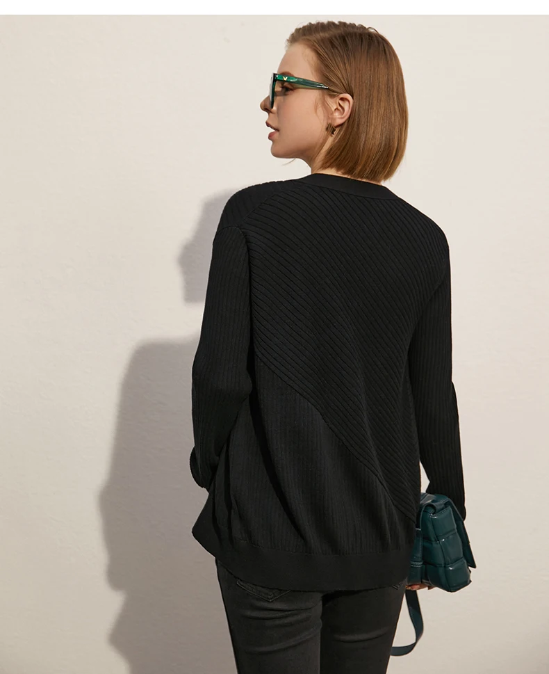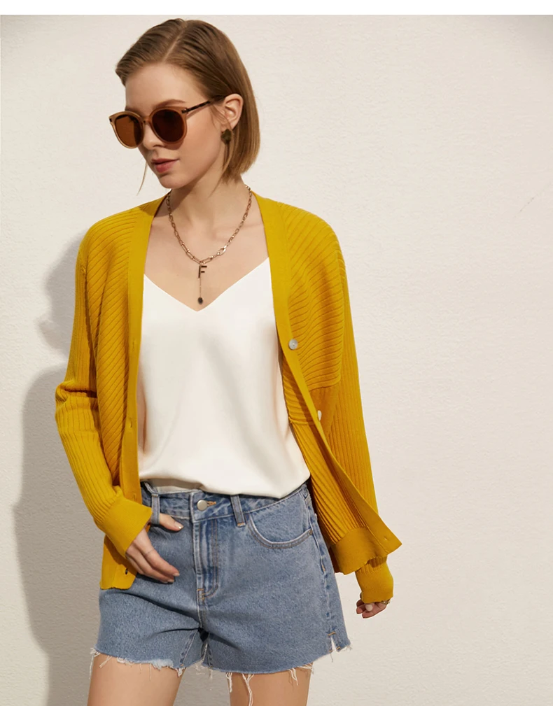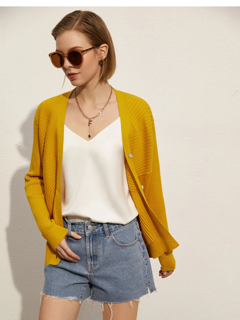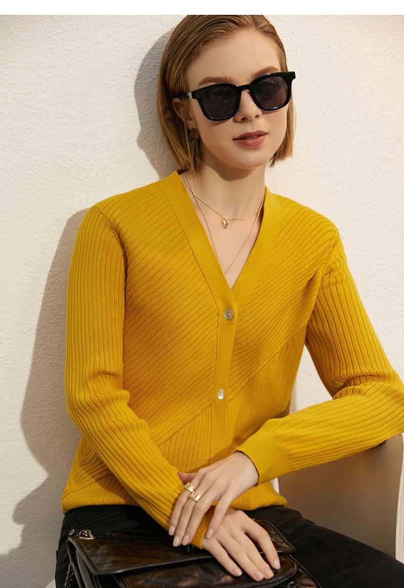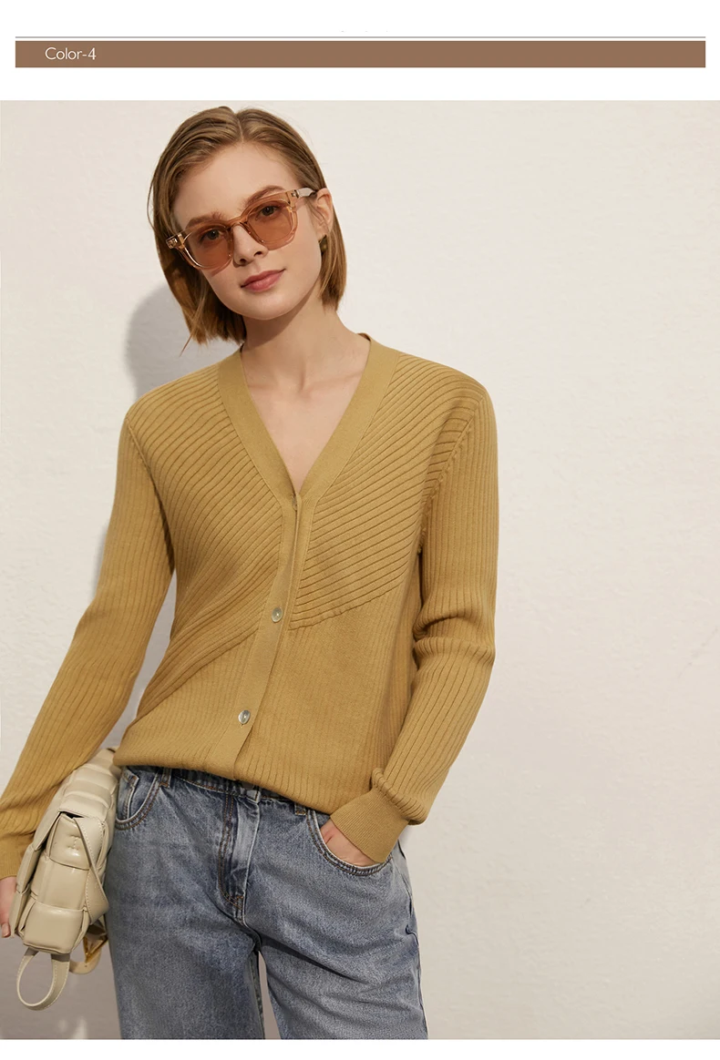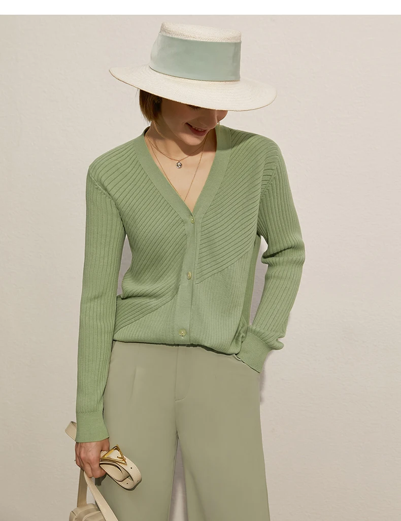Кардиган женский весенний однобортный в полоску с V-образным вырезом, 12130073