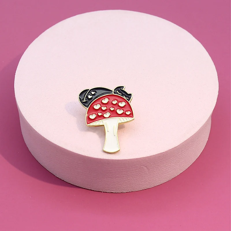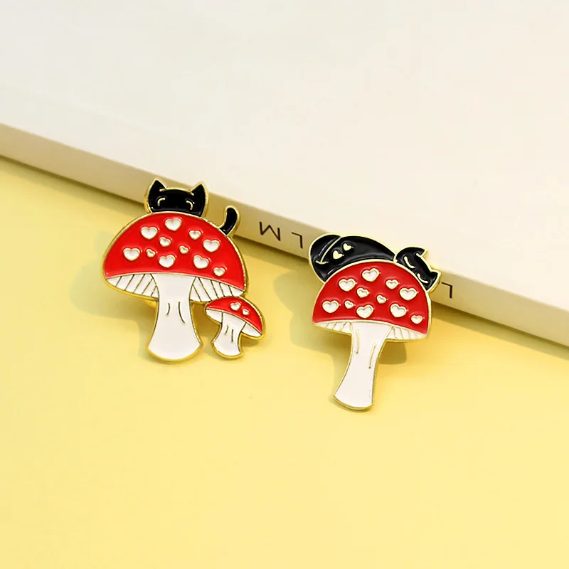 Черная кошка, которая любит красные грибы, эмалированная брошь, Симпатичные животные, котенок, булавка на лацкан, рюкзак, одежда, шляпа, забавный значок, подарки для детей