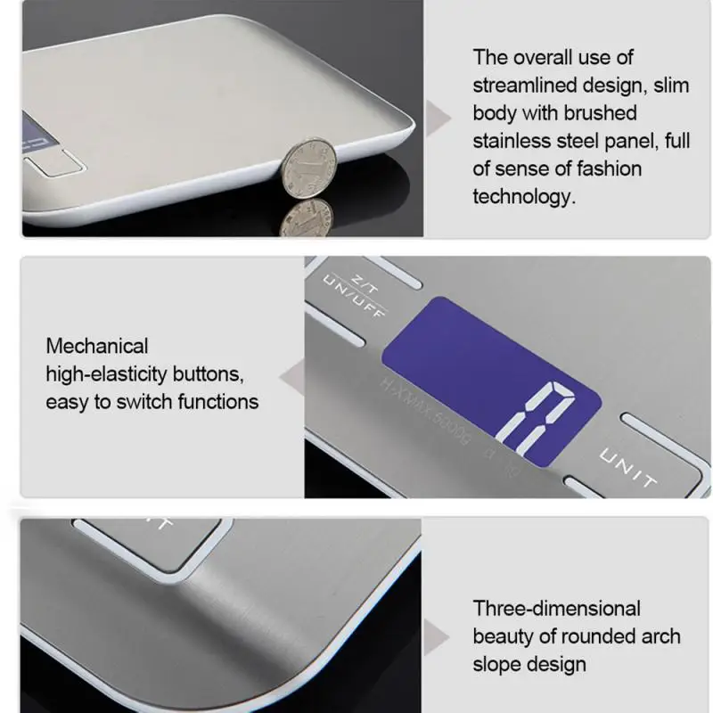 Индикации веса отображаются в пяти различных режимах: g,kg,oz,lb,mike ml, вы можете свободно переключаться нажатием кнопки.
