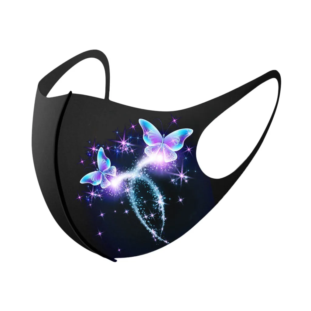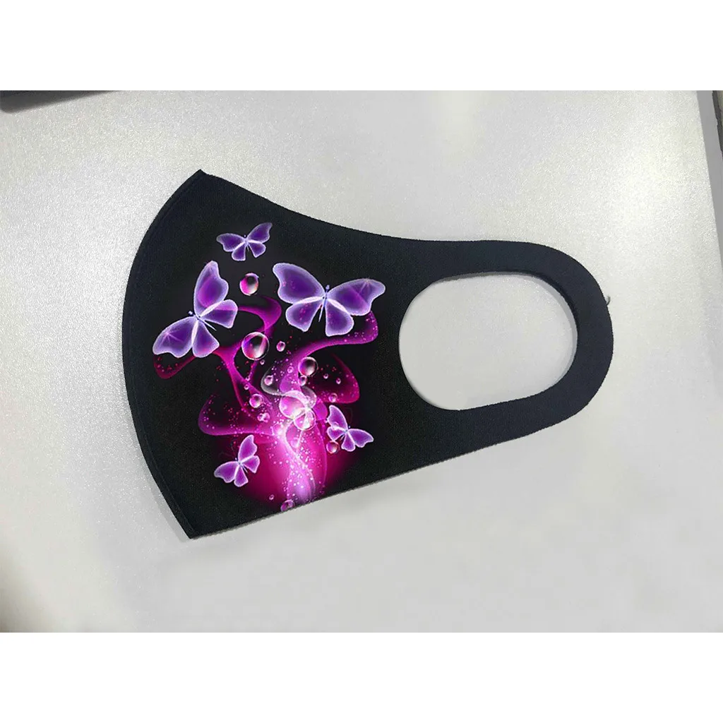 Черная защитная маска для лица # B01, женская маска для рта с принтом бабочки, моющиеся колпачки для рта, многоразовые маски, маска