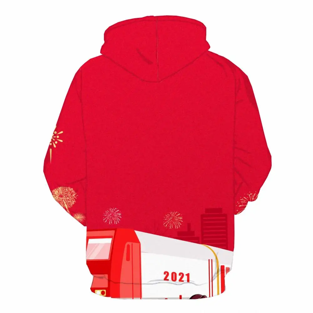 Худи мужское с 3D-принтом, свитшот на новый год, Повседневная Красн...