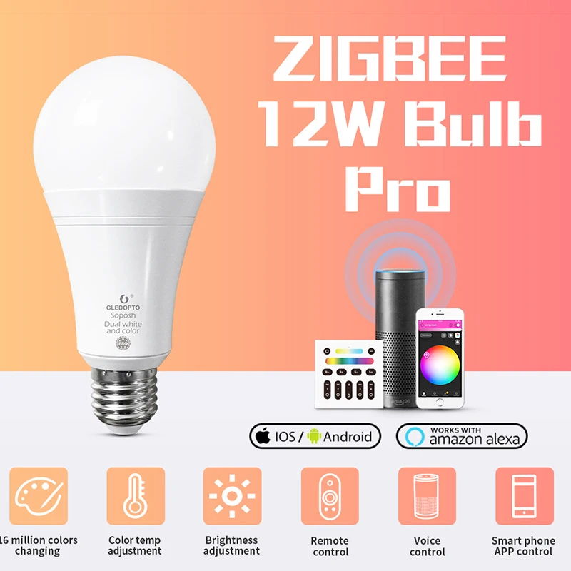 Широкая совместимость: Светодиодная лампа работает с ZigBee светильник Link(ZLL), совместим с Amazon Echo Plus или другими брендами шлюзов и Android iOS системы.