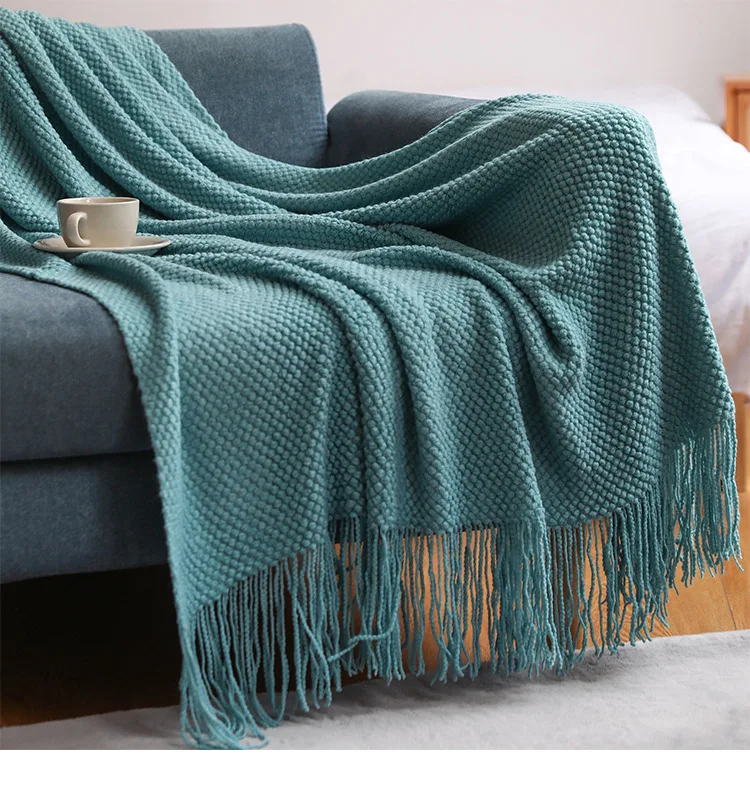 Плед вязаный, s-образный, для дивана, с кисточками, вафельные одеяла