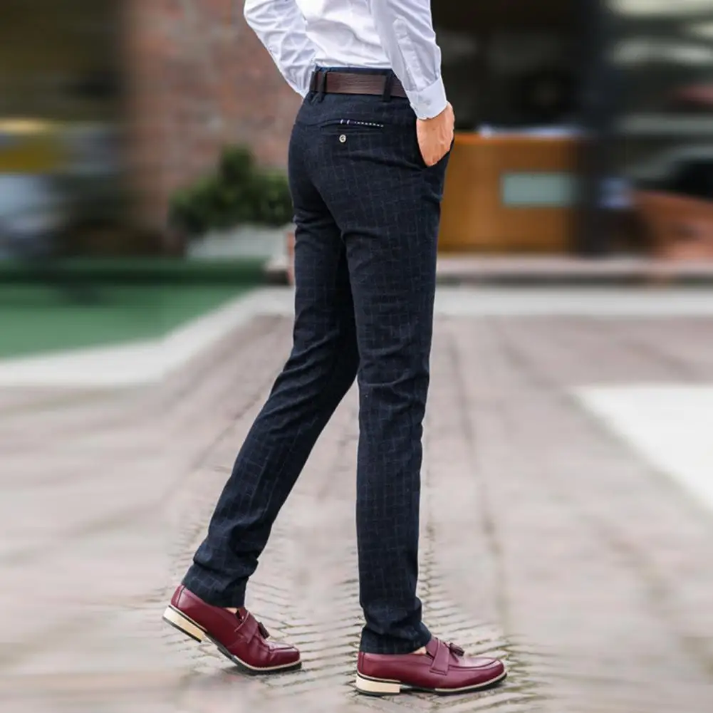 80% Лидер продаж! Мужская осень-зима в мелкую клетку, с карманом длинные узкие брюки деловая модельная одежда брюки для девочек