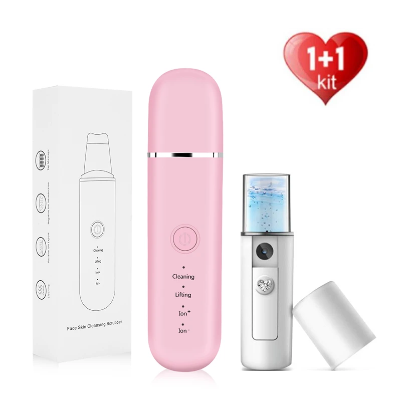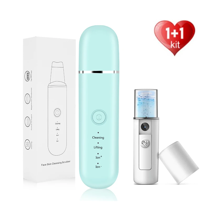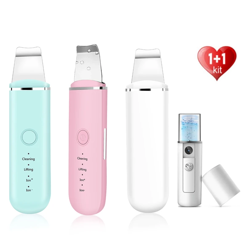 Ультразвуковой скруббер для кожи + нано-отпариватель для лица, очиститель пор, ионное удаление угрей, ОТШЕЛУШИВАЮЩИЙ ПИЛИНГ, шпатель, Подъемные Инструменты