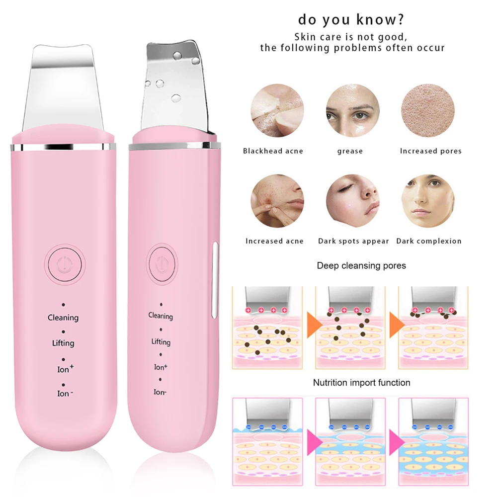 Ультразвуковой скруббер для кожи очиститель для лица удаление угрей пилинг очиститель для лопаты ионный Массажер для подтяжки лица машина