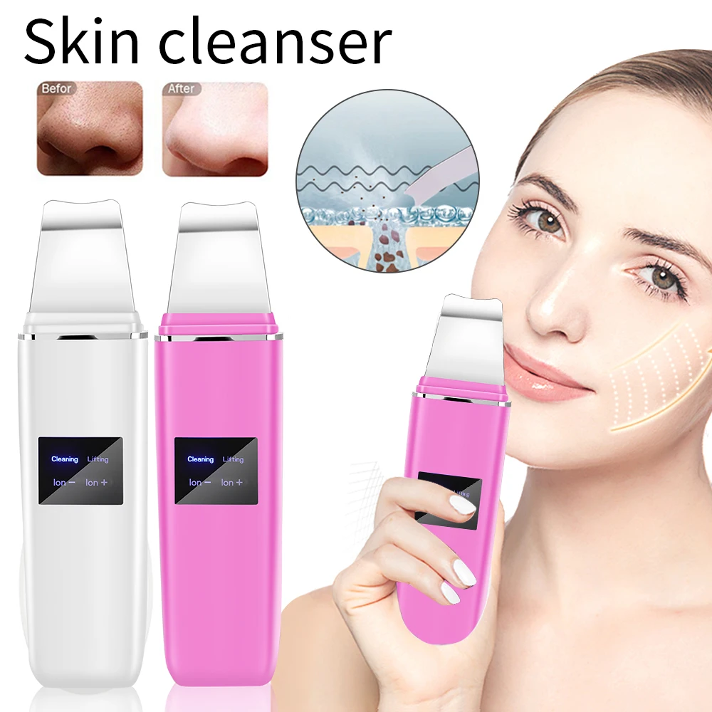 ЖК-дисплей ультразвуковой кожи скруббер Очиститель пор ионный акне для удаления угрей ОТШЕЛУШИВАЮЩИЙ ПИЛИНГ шпатель Подъемные Инструменты очищающее средство для лица