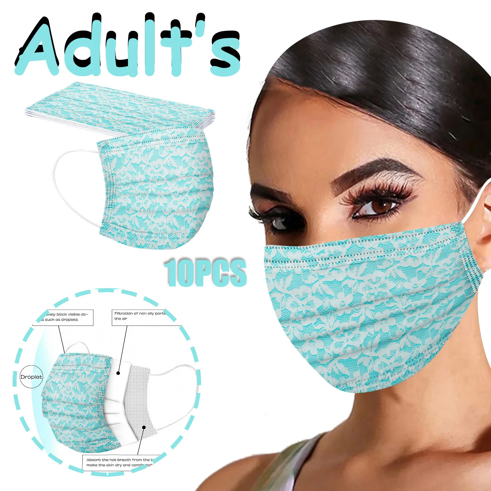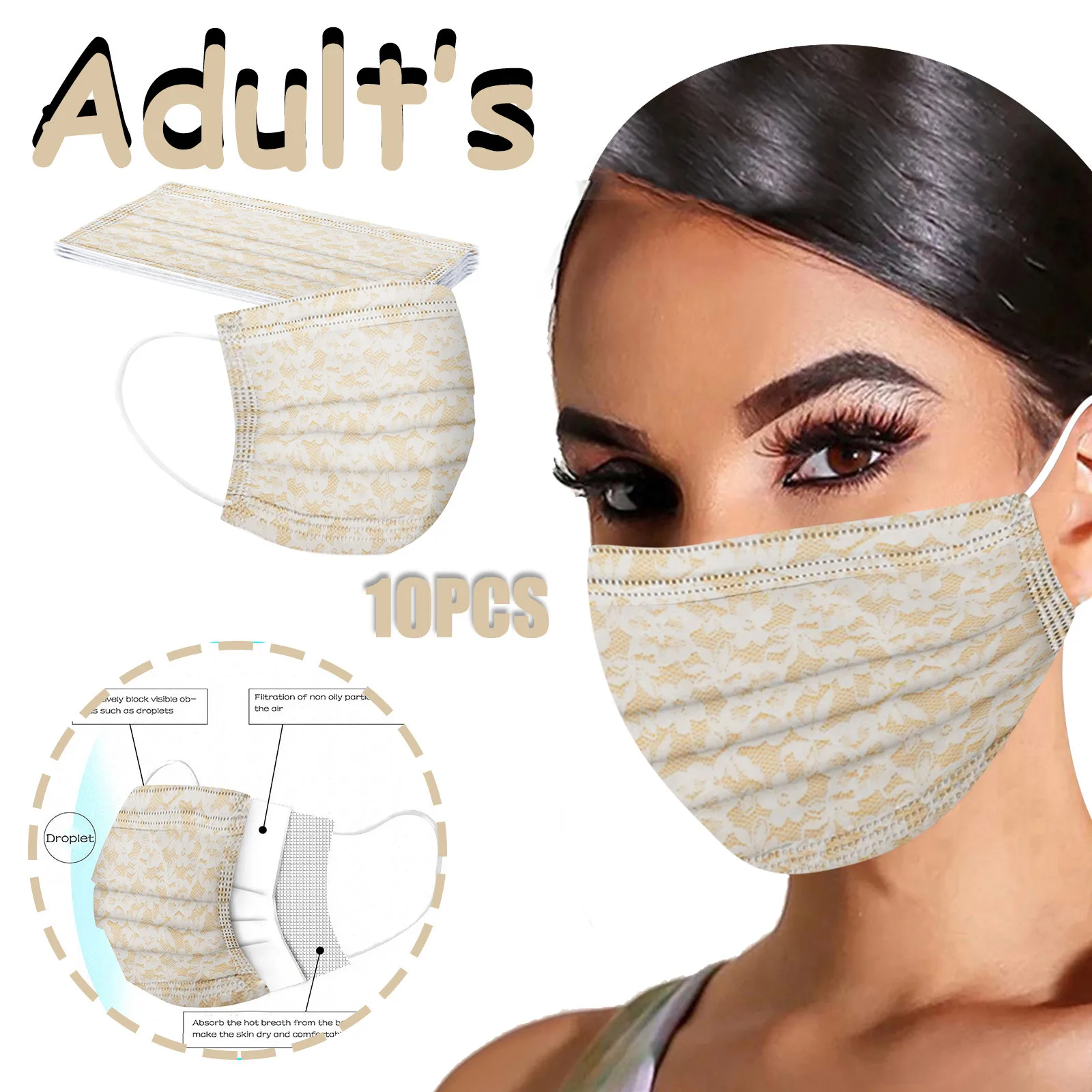 Одноразовая маска для лица, с кружевным принтом, 3 слоя, с петлями для ушей, Anti-pm2.5, 10 шт.