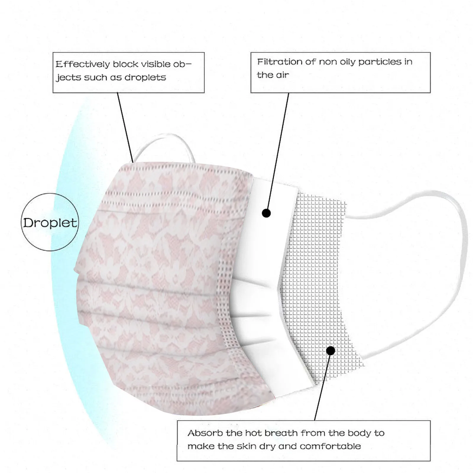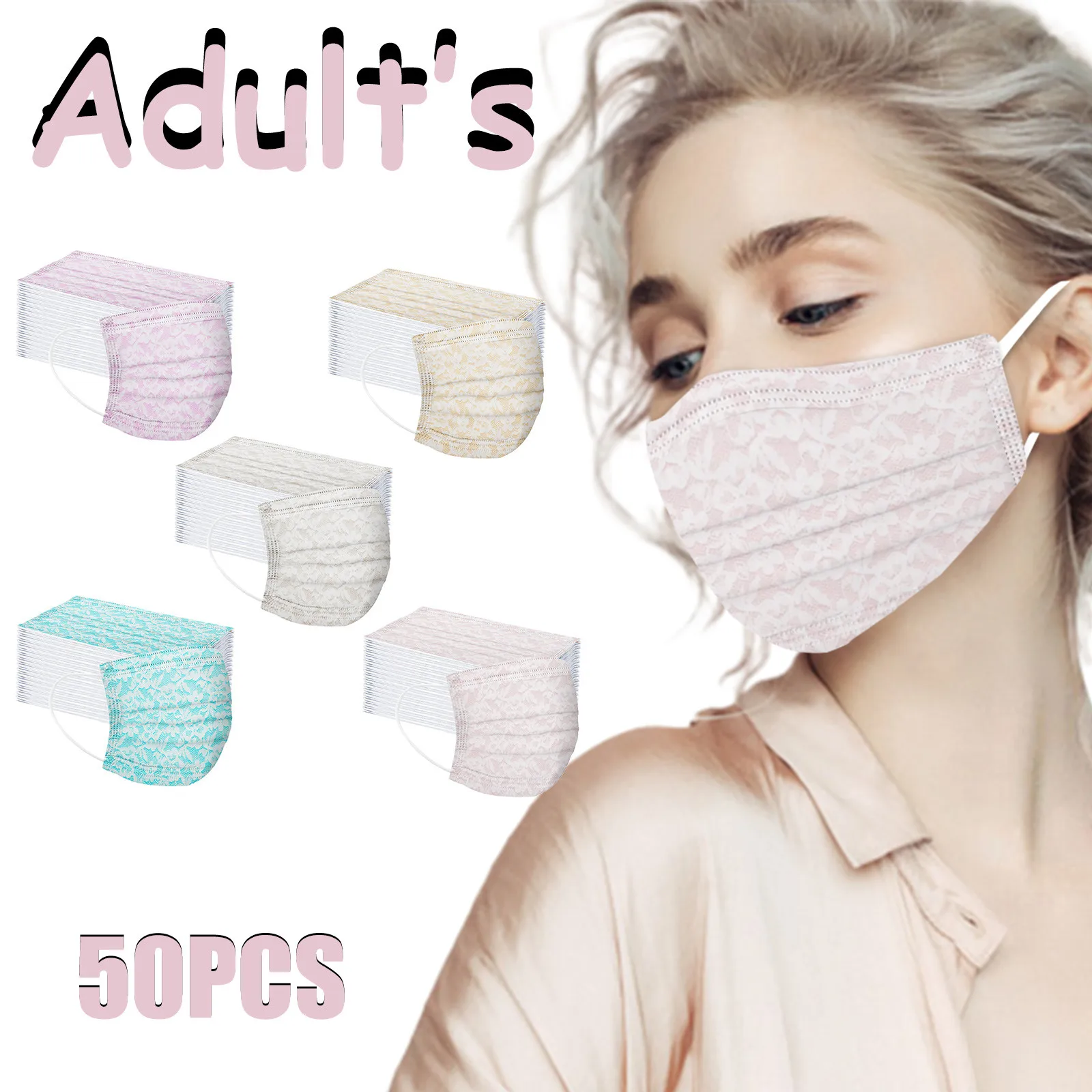 Маска для лица одноразовая с кружевным принтом, 3 слоя, дышащая, с ...