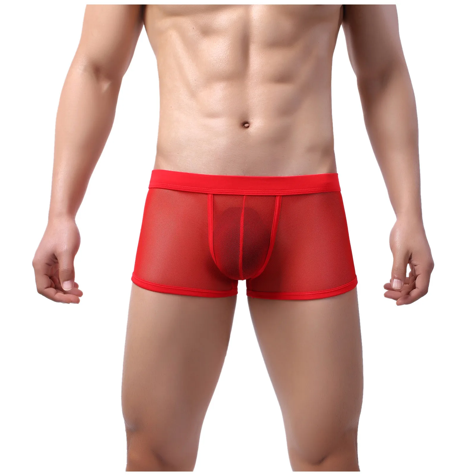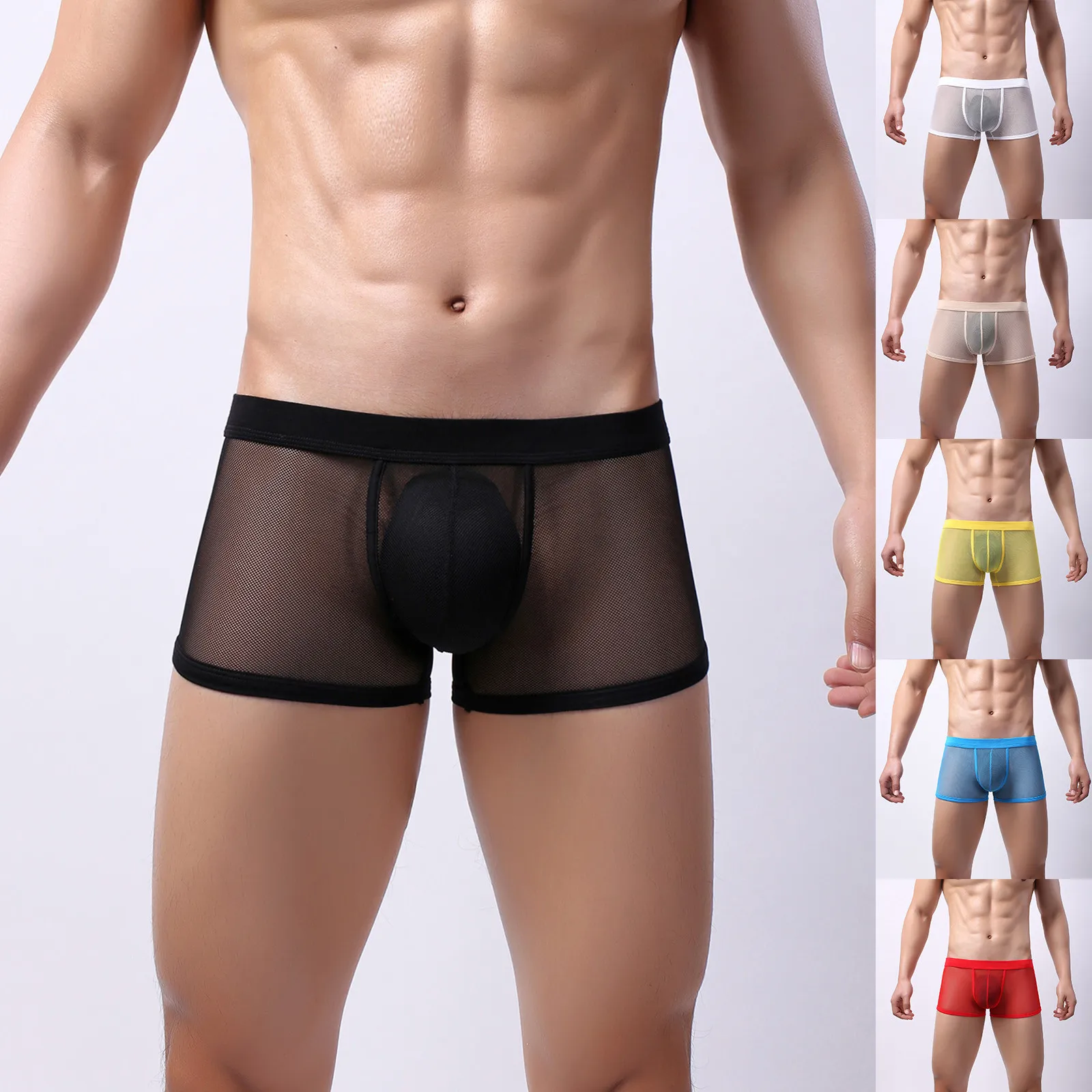 Мужское сексуальное нижнее белье из дышащей сетки, мужское нижнее белье со средней талией для отдыха и спорта