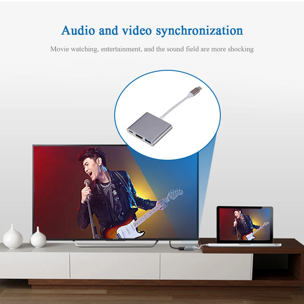 Кабель-преобразователь 3 в 1, 4K 1080P Type C на HDMI-совместимыйUs...