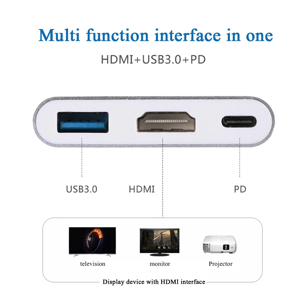Многопортовый адаптер PD USB 3,0 3 в 1, адаптер с USB 3.1 типа C папа на HDMI, совместимый адаптер для офиса, уход, компьютерные принадлежности