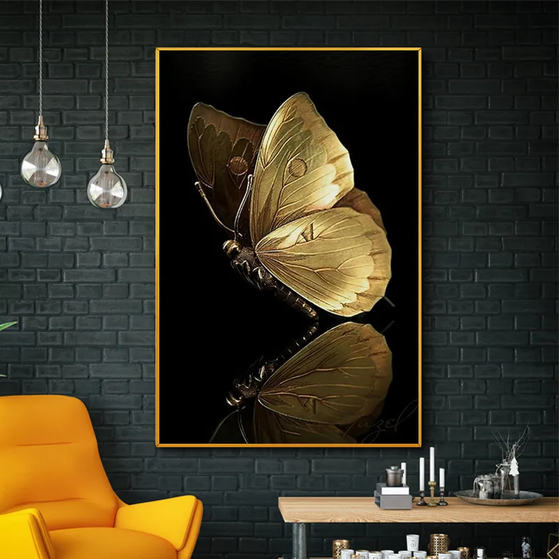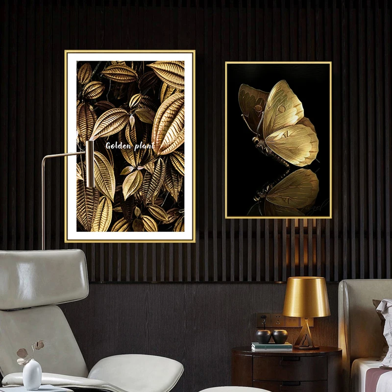 Холст декоративные черные золотые тропические листья бабочка ананас абстрактное искусство стены Золотая Картина на холсте декоративная картина