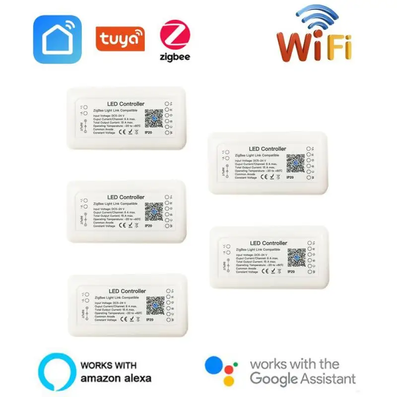 Умный светодиодный контроллер Tuya Zigbee 3,0 RGB + CCT 6pin светильник контроллер полосы DC12-24V работы с Alexa Google Assistant