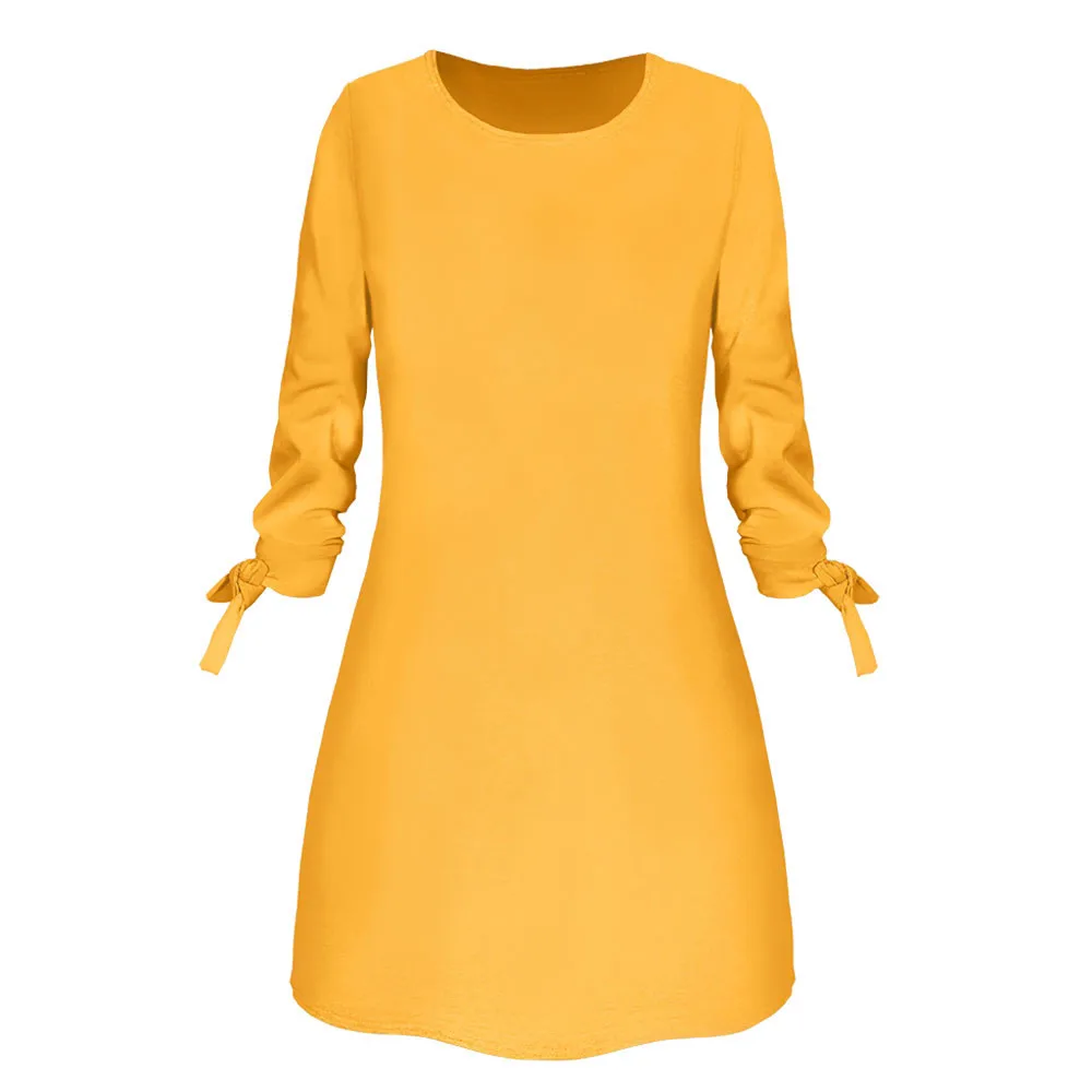 Платье Женское прямое, с круглым вырезом и длинным рукавом, 40 #