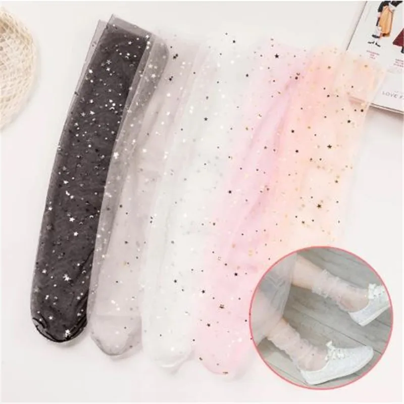 Носки сетчатые, прозрачные, с блестящими звездами, луной, лето тонк...