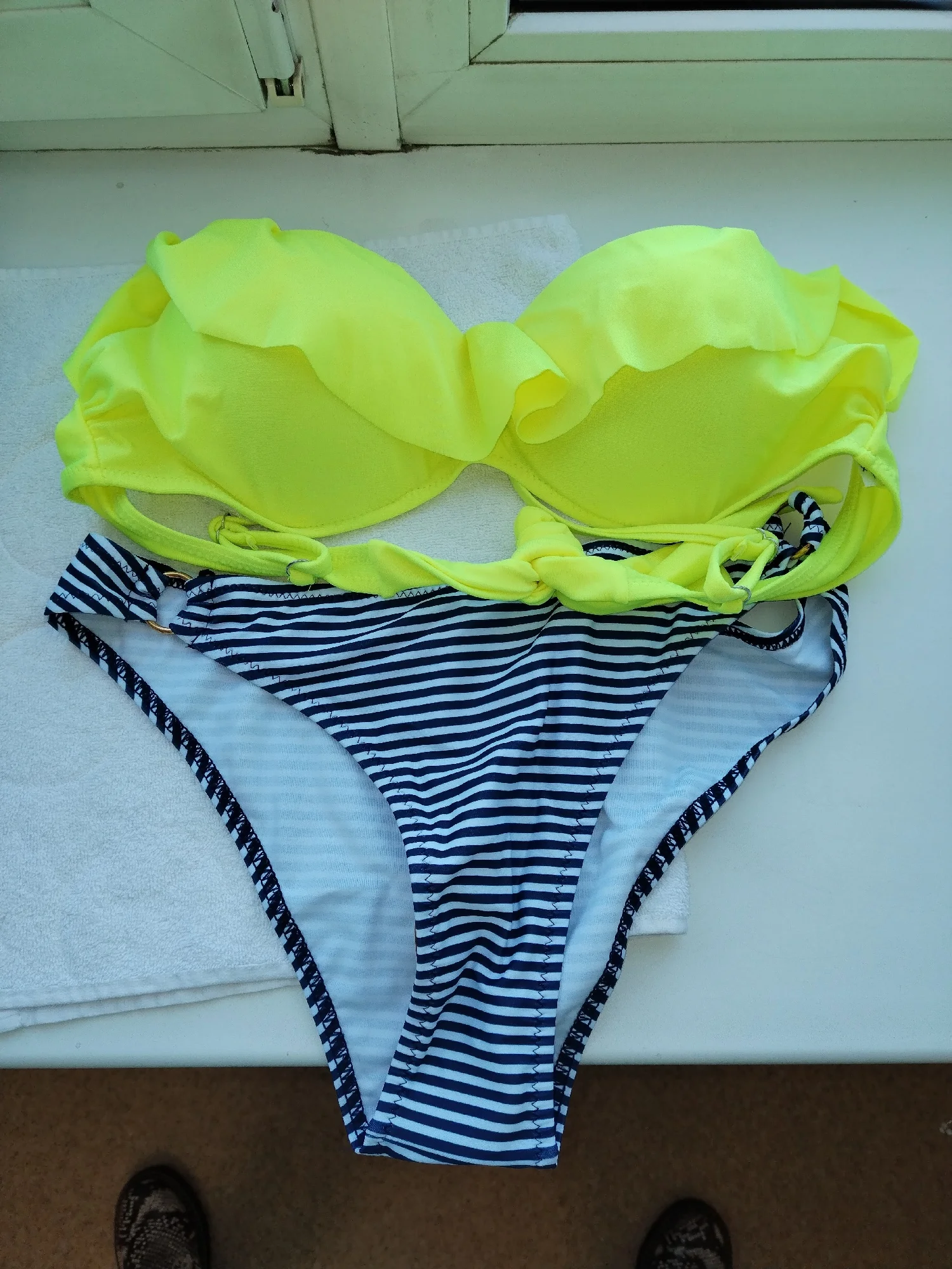 Купальник пришёл раньше сказанного срока,это очень здорово и спасибо продавцу. Но пожалела,что не отнеслась серьёзно к отзывам. Не понятная какая то модель. Трусы еле натянула,а лиф огромный,да и завязывается сзади почти на шее,а не посередине спины.Если подтянуть бретельки,то снизу выскакивает грудь.Ткань на трусах не для купальника-тонкая. на свой 46 р. XL не подошёл. я очень разочарована.Жаль.