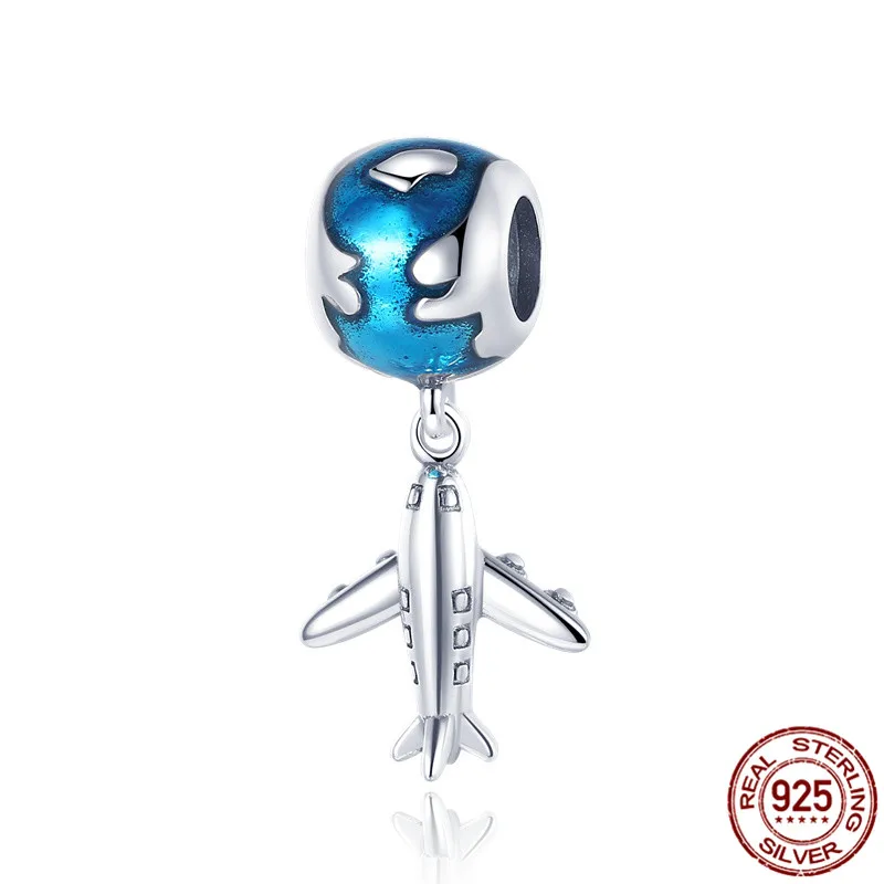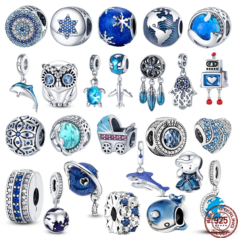 Женская модель, Серебряные Акулы и синие Бусины для самолета, подходят для оригинального браслета Pandora, серебро 925 пробы, ювелирные изделия