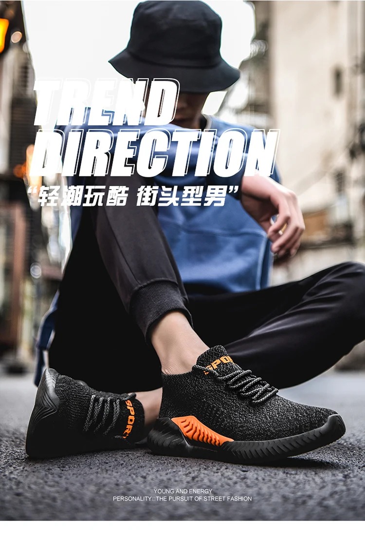 Кроссовки мужские, дышащие, с высоким берцем, с мягким носком, сетч...