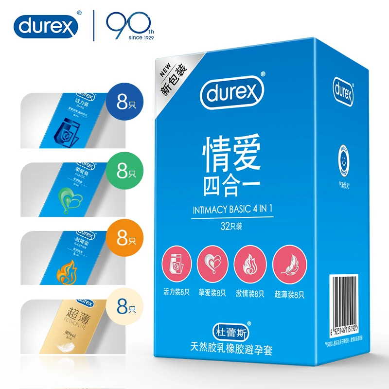 Ультратонкие латексные презервативы Durex для мужчин, с лубрикантом, 4 вида, 32 шт., упаковка презервативов