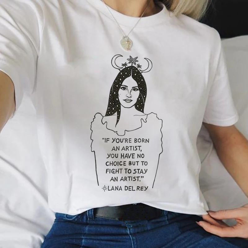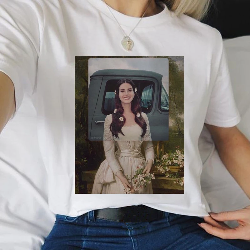 Лана Дель Рей печатных женские футболки с рисунками из мультфильмов летняя футболка с короткими рукавами в стиле Харадзюку Футболка с принтом Женская Повседневная белая футболка женская одежда