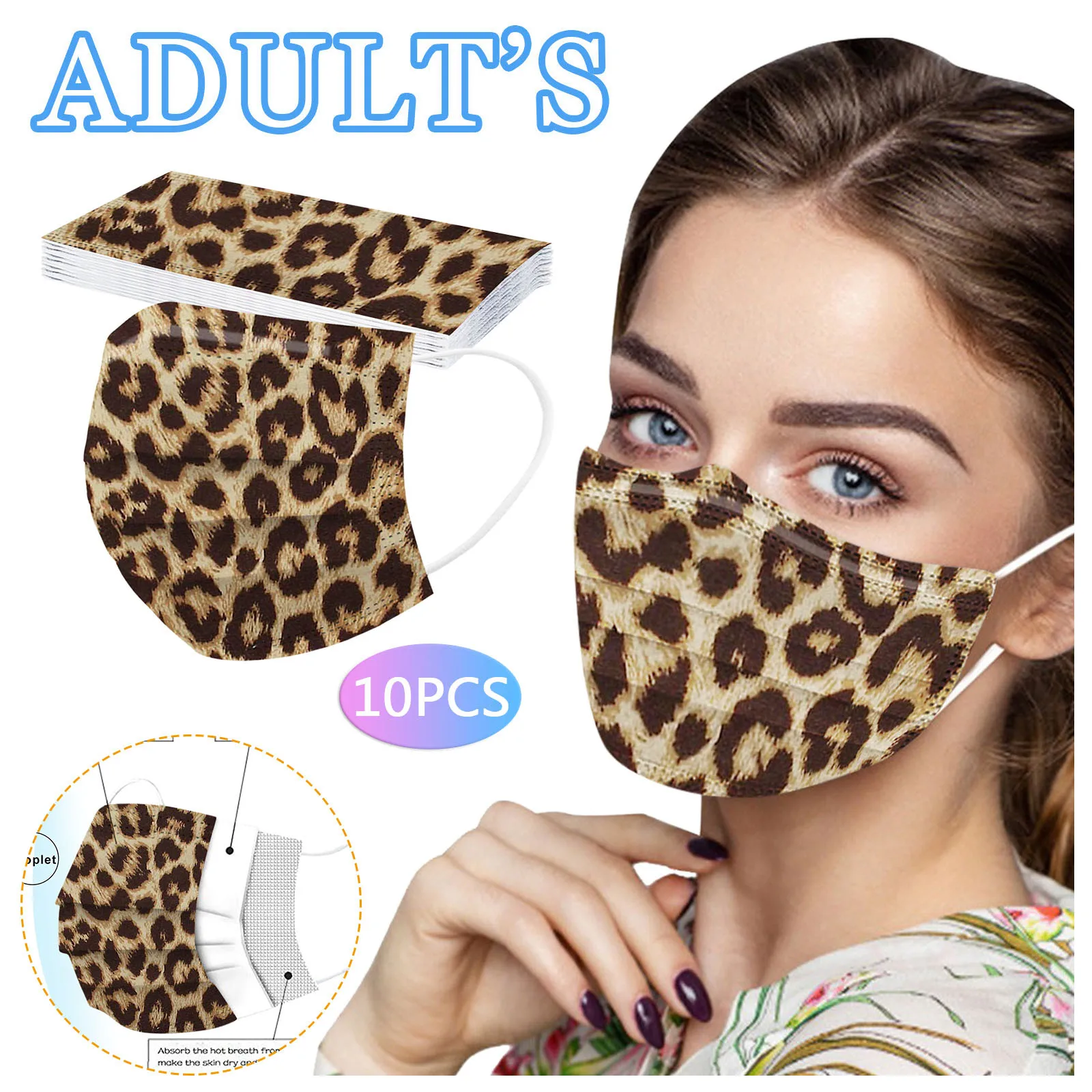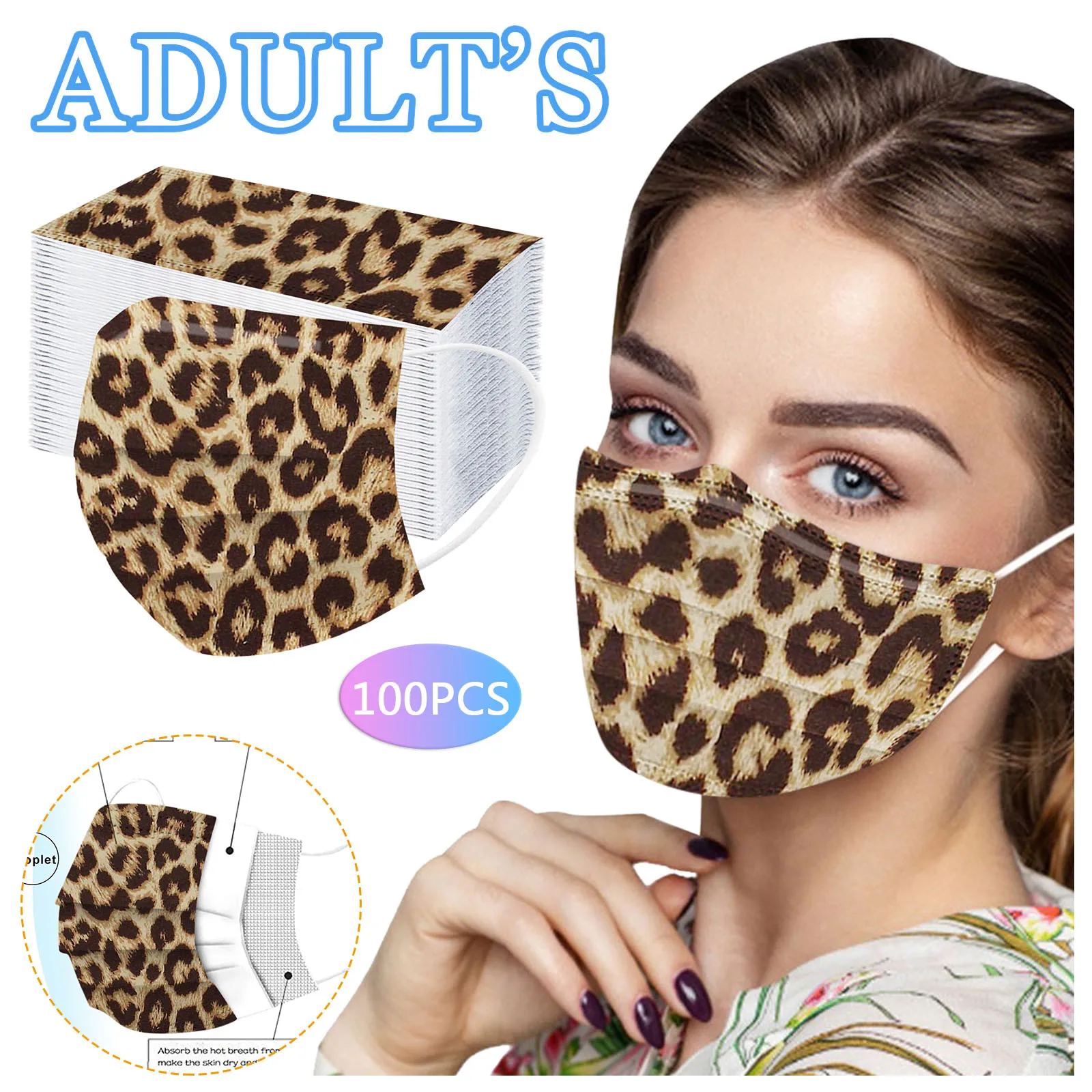 Одноразовая маска с леопардовым принтом и флагом для косплея, модная бандана для взрослых, декор для лица, маска на Хэллоуин для косплея, 10-100 шт.