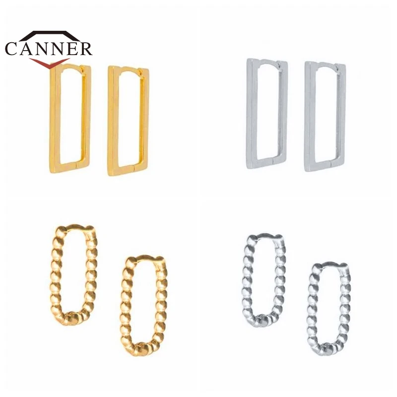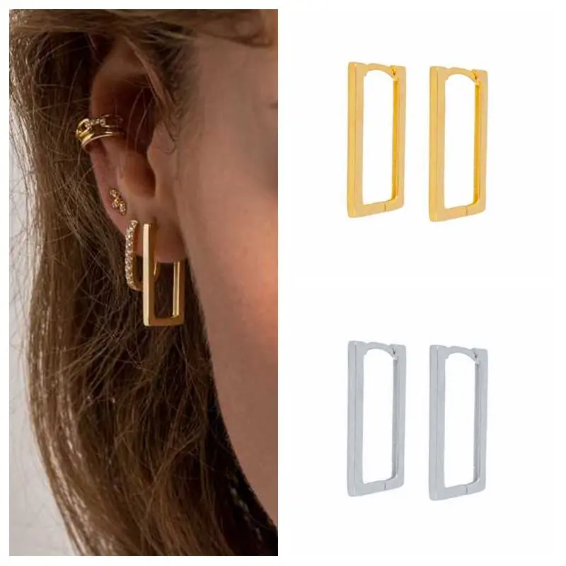 Автоклав 925 стерлингового серебра серьги Huggie полый прямоугольни...