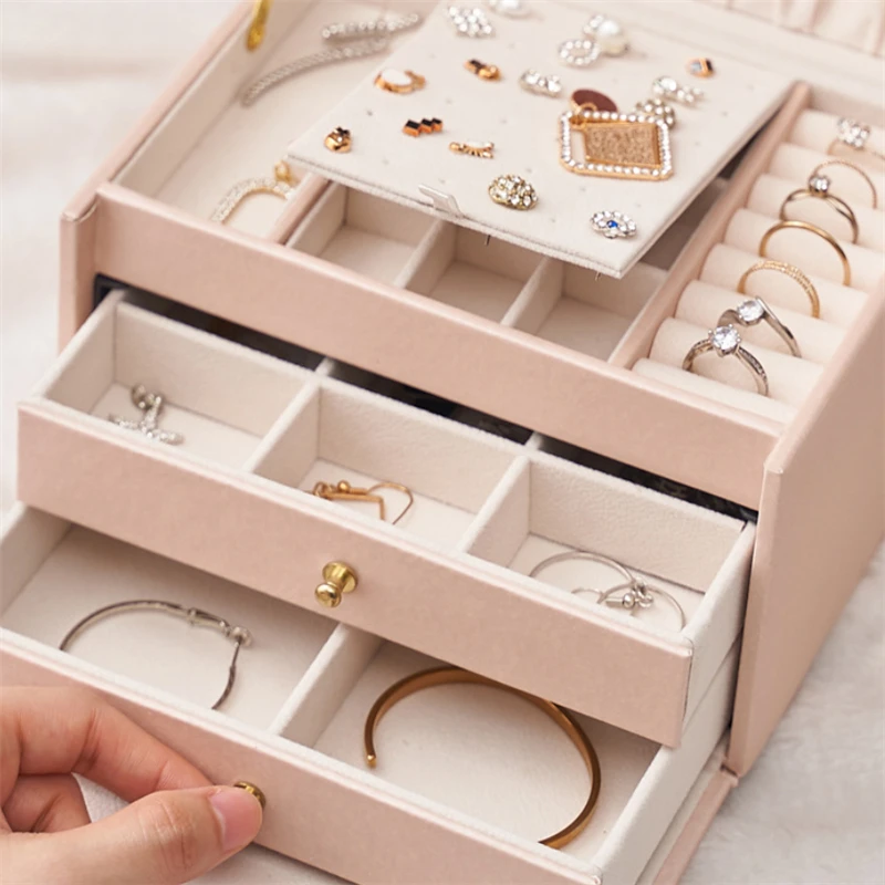 Шкатулка для ювелирных украшений XINSOM из искусственной кожи, вместительный бокс для хранения цепочек, серег, колец, браслетов, кейс для хранения ювелирных украшений