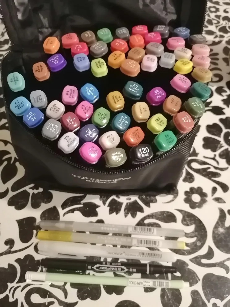 Маркеры пришли на 3й день!!! Все маркеры пишут, засохших нет, одна сторона долото, вторая кисточка/браш. Очень переживала, что могут перепутать и вместо браш отправить пулю, но нет, всё прекрасно!!! Единственная мелочь это то, что цвет маркера не совсем совпадает с цветом колпачка, сам маркер чуточку темнее, но это не страшно. На двух фото полный комплект, который прислал продавец.