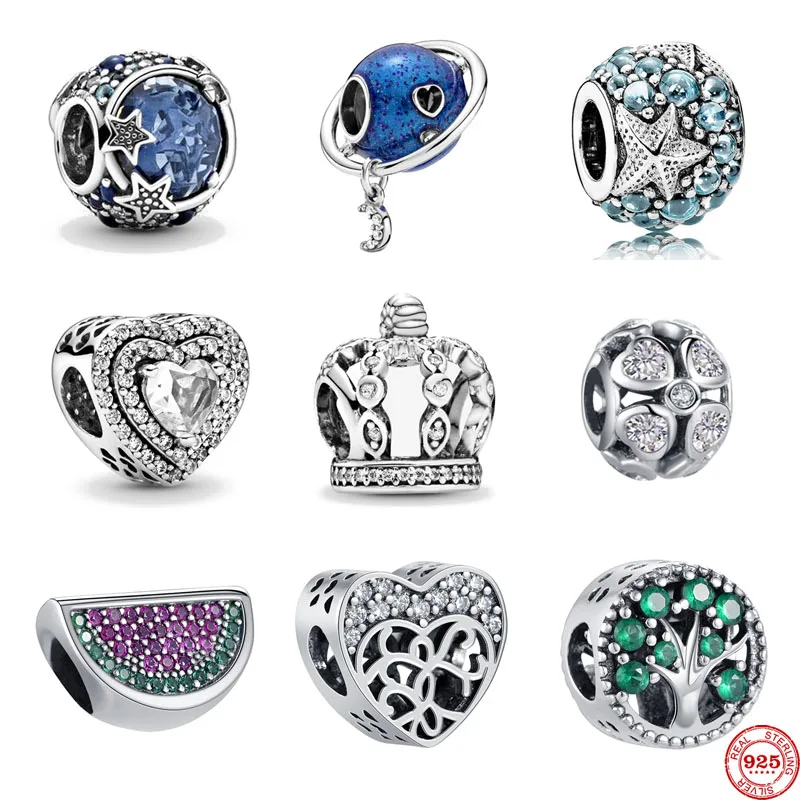 Новая голубая звезда Глобус сверкающие Сердце Клевер Бисера fit оригинальный, соответственные Европейской Пандоре обаятельные Серебро 925 браслет для женщин ювелирные изделия аксессуары C035