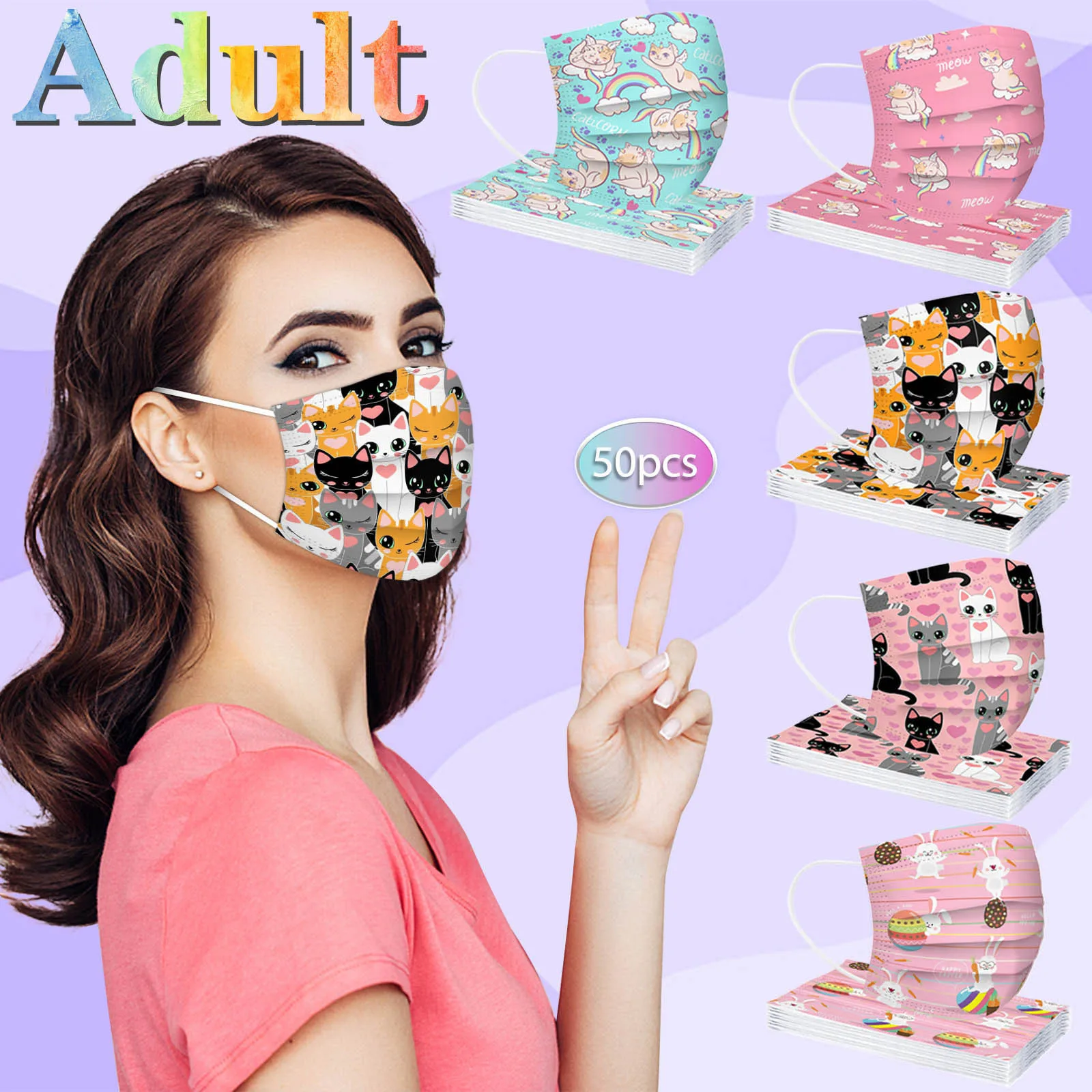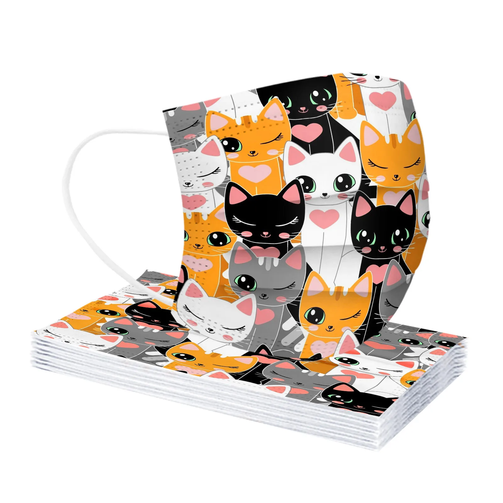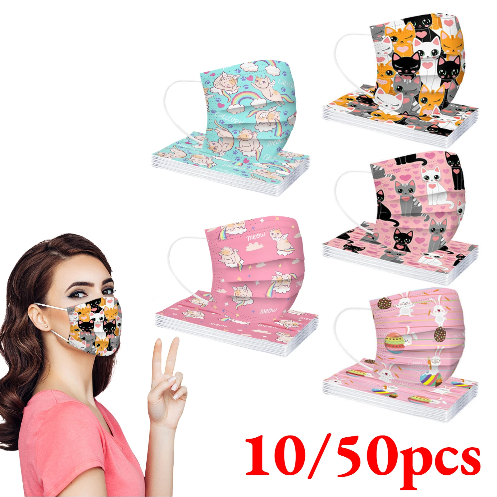 10 шт.50 шт. одноразовая маска для лица маска с рисунком кошки для взрослых Нетканая Пылезащитная маска для лица промышленная 3-слойная маска с ушными петлями маски