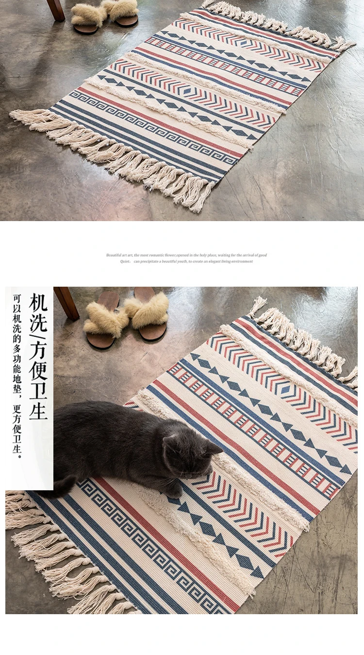 Ковер с бахромой из хлопка и льна в богемном стиле, ковер ручной работы в стиле ретро, коврик для пола с геометрическим узором, коврик для гостиной, спальни, домашний декор