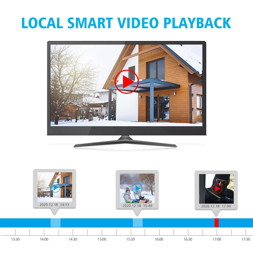 * Простое воспроизведение видео, воспроизведение видеозаписей на мобильном приложении удаленно или видеорегистратор NVR локально. Сначала установите жесткий диск.
