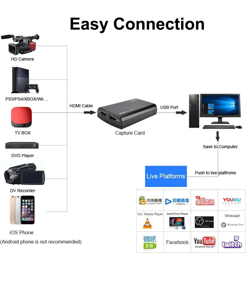 Ezcap 321 321B 321C USB 3,0 HDMI карта для захвата видео в прямом эфире коробка для записи игр до 4K 1080P 120fps 60fps HDMI линейный вход