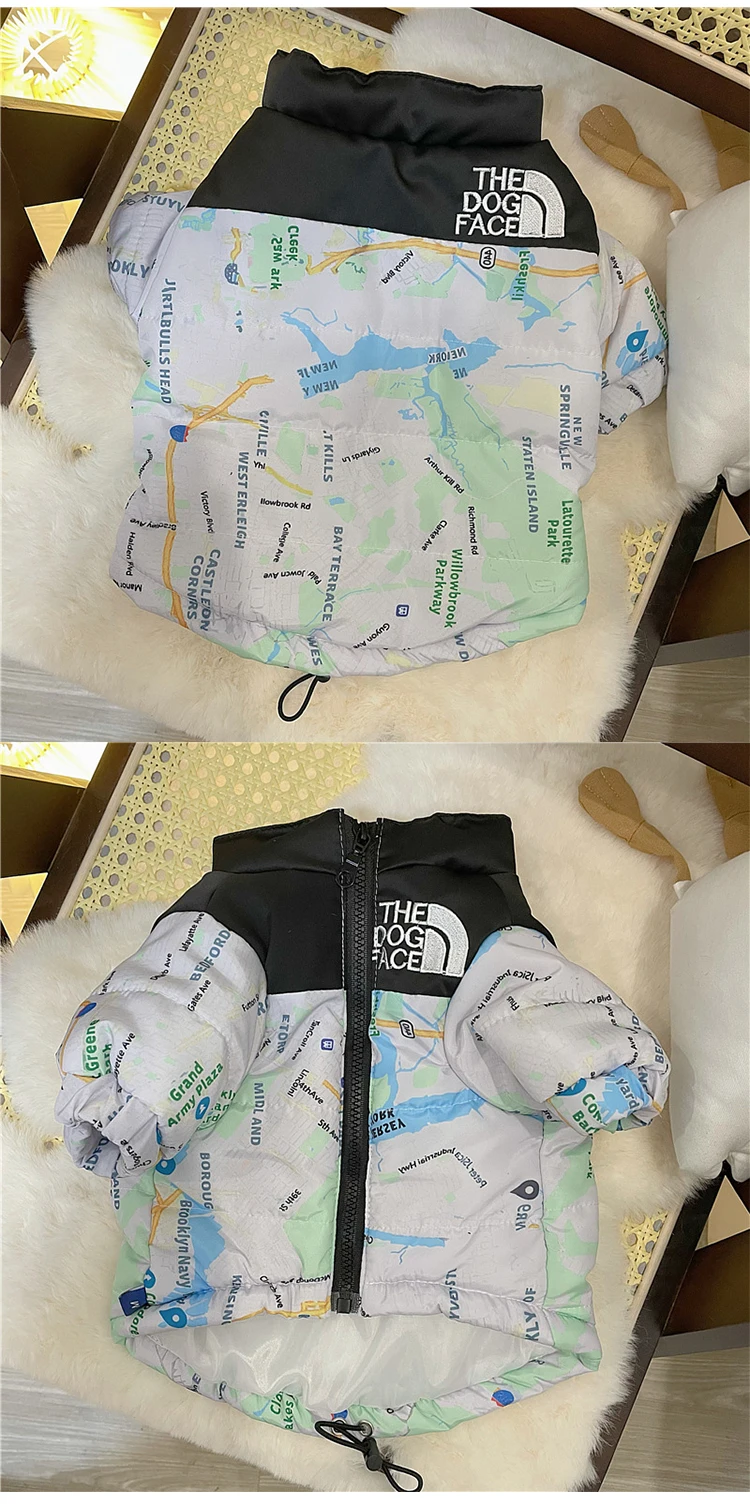 Зимнее теплое пальто для собаки, водонепроницаемая куртка для собаки, с рисунком лица собаки, светоотражающая одежда для щенка