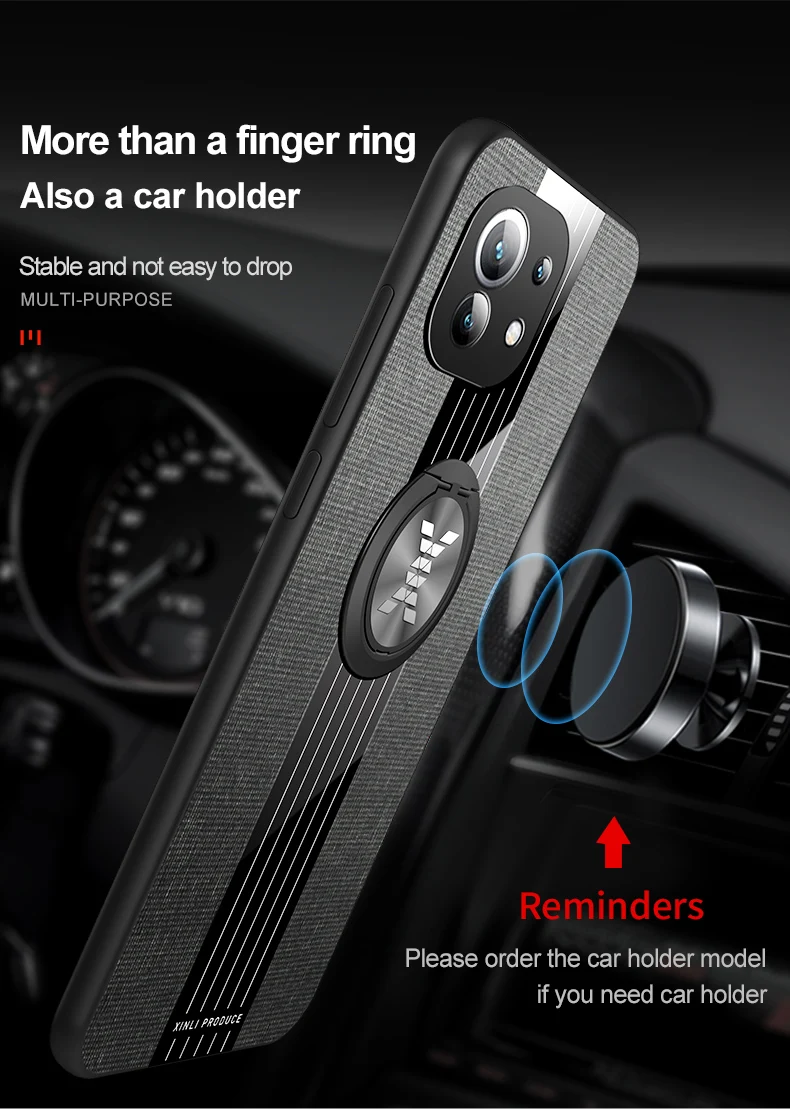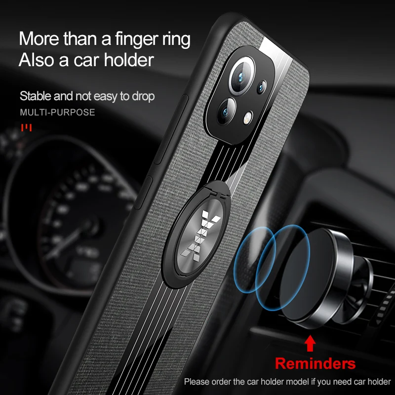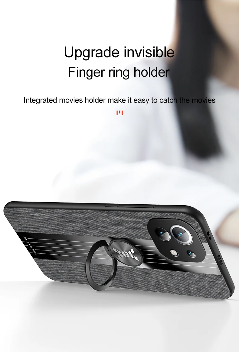 Чехол с кольцом-держателем для Xiaomi Mi11 Mi 11 Lite, тканевая тек...