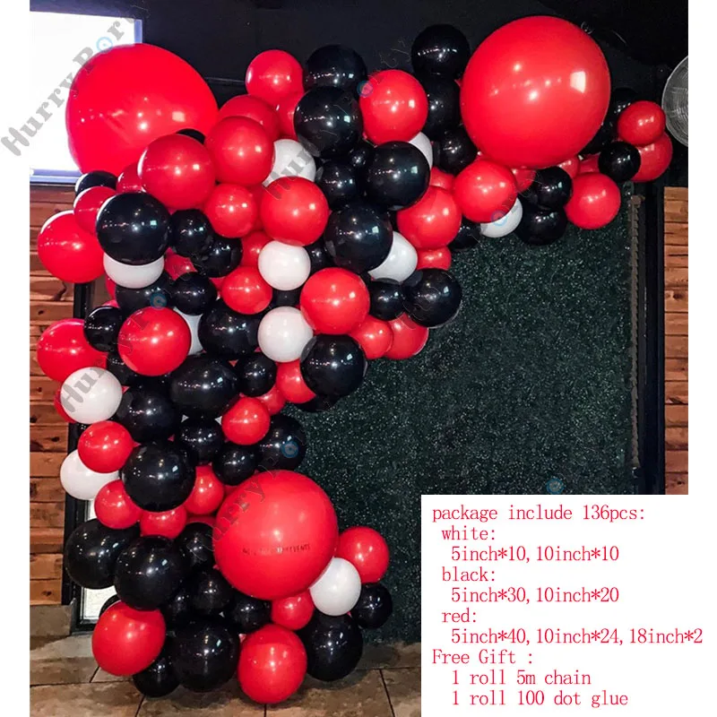 Украшение для свадьбы, вечеринки, детского праздника, черного, красного цвета, 136 шт., воздушные шары для украшения дня рождения, комплект гирлянды, новый год