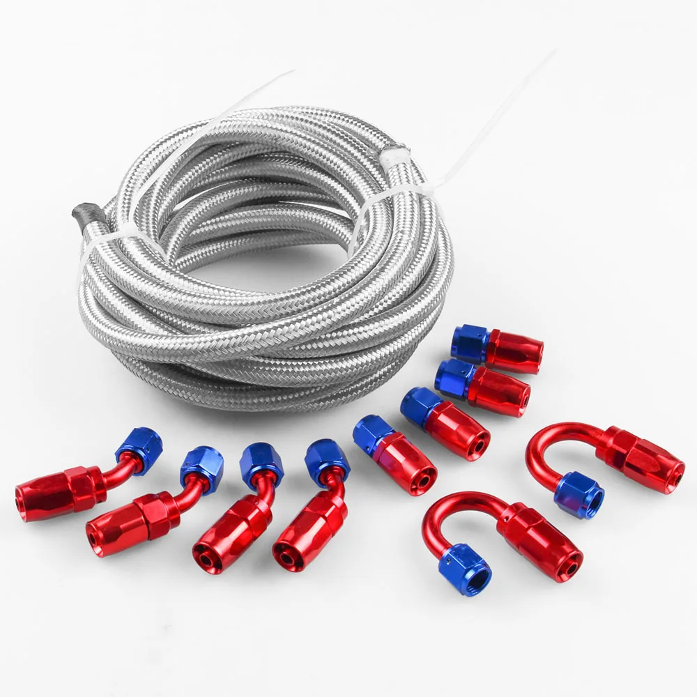 1 комплект 5 м AN6 304 из нержавеющей стали, плетеный маслопровод из ПТФЭтопливного масла + адаптер для конца шланга комплект 0 + 45 + 90 + 180, поворотный конец шланга, топливный шланг