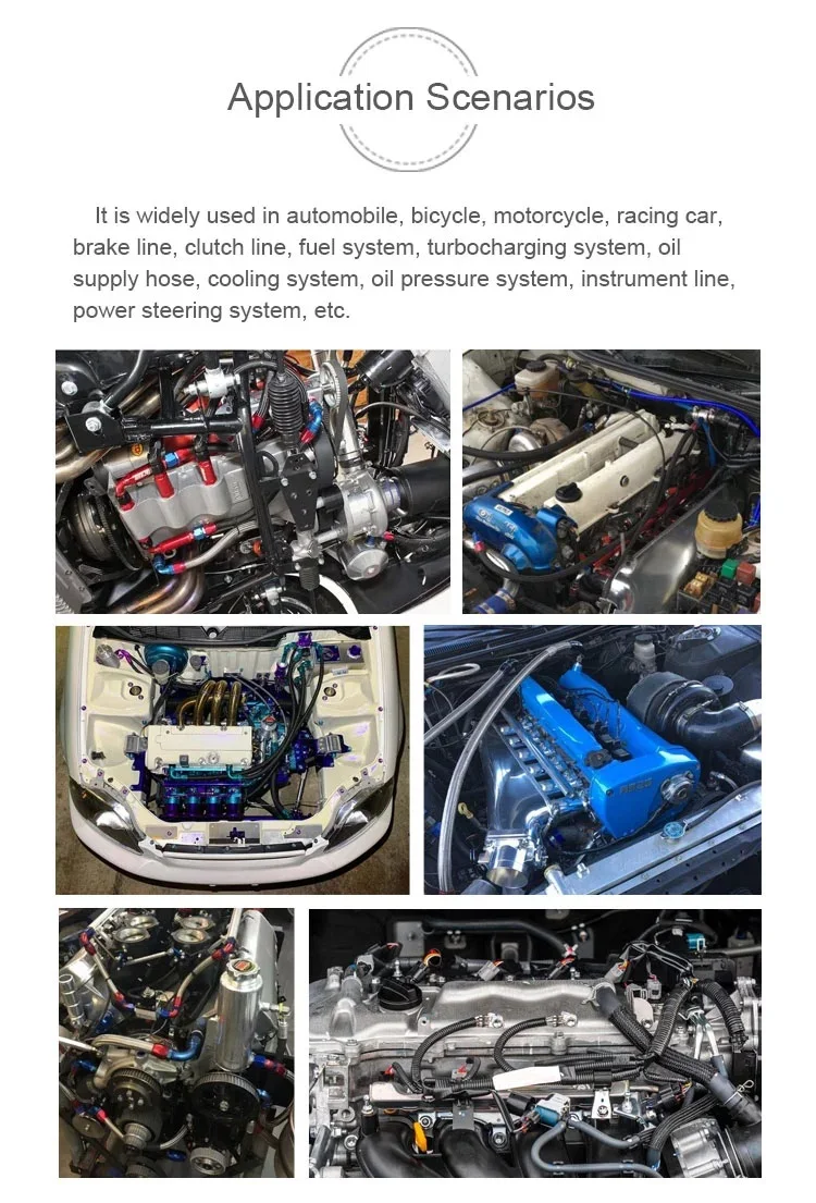 Серебряный AN6 304 нержавеющая сталь плетеный PTFE 6AN масло/топливная линия/шланг + фитинг/конец шланга/адаптер КомплектОсобенности:Высокопроизводительный Плетеный гоночный шланг обеспечивает непревзойденный уровень производительности и надежности для ваших жестких приложений.Высококачественные конструкции гоночных шлангов:1. Внутренний вкладыш изготовлен из синтетической резины, чистый и быстрый поток,Обеспечивает постоянный поток во время работы гоночного двигателя.2. Внутренняя оплетка из нержавеющей стали с Частичным покрытием вплетена во внутреннюю подкладку из высококачественного синтетического каучука.Delikon запатентовал технологию производства, которая гарантирует, что сроки плетения и отверждения резины во время строительства идеальны,Таким образом, достигается желаемая гибкость и механическая связь между оплетенными слоями.3. Полное покрытие наружной оплетки из высокопрочной нержавеющей стали обеспечивает максимальное давление,Сохраняя красоту и гибкость, которая имеет важное значение для качества высокопроизводительного шланга.Настоятельно рекомендуется Профессиональный установщик (инструкции не включены!)Характеристики:Материал: высококачественный алюминиевый сплав T7Основной цвет: серебристый