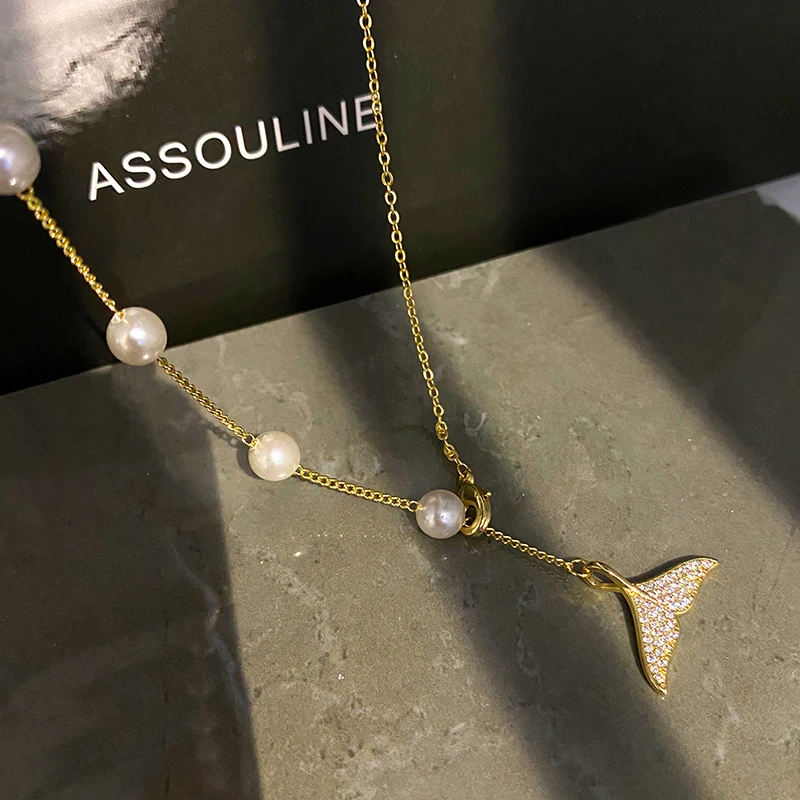 Французская романтическая элегантная жемчужная цепочка красивое кулон в виде рыбьего хвоста ожерелье для женщин вечерние вечерняя Женская цепочка до ключиц