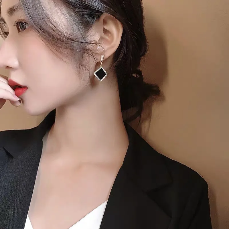 S925 в Корейском стиле Модные простые классические квадратные серьг...