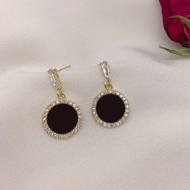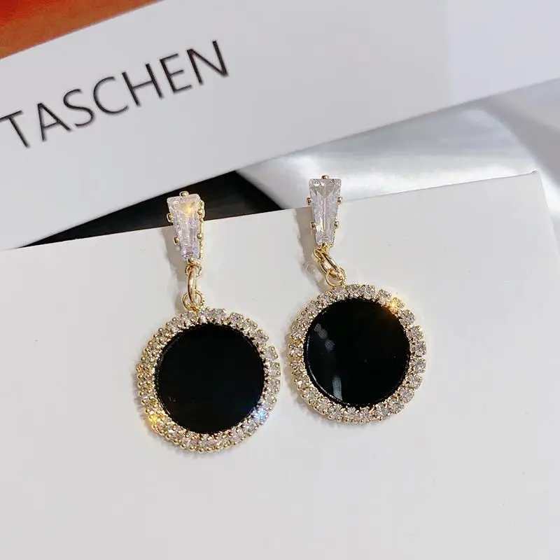 Модные черные круглые металлические серьги для женщин золотые блест...