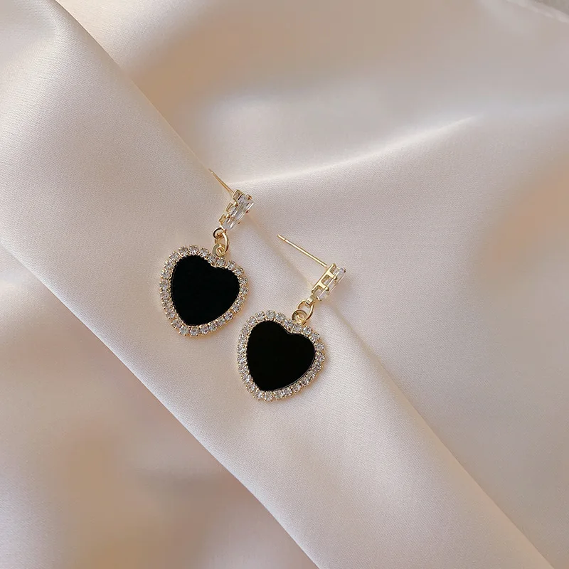 Серьги-подвески в форме сердца женские, Классические Висячие Ювелирные украшения с черным Персиком, вечерние Роскошные циркониевые серьги для модные корейские драгоценности, 2021