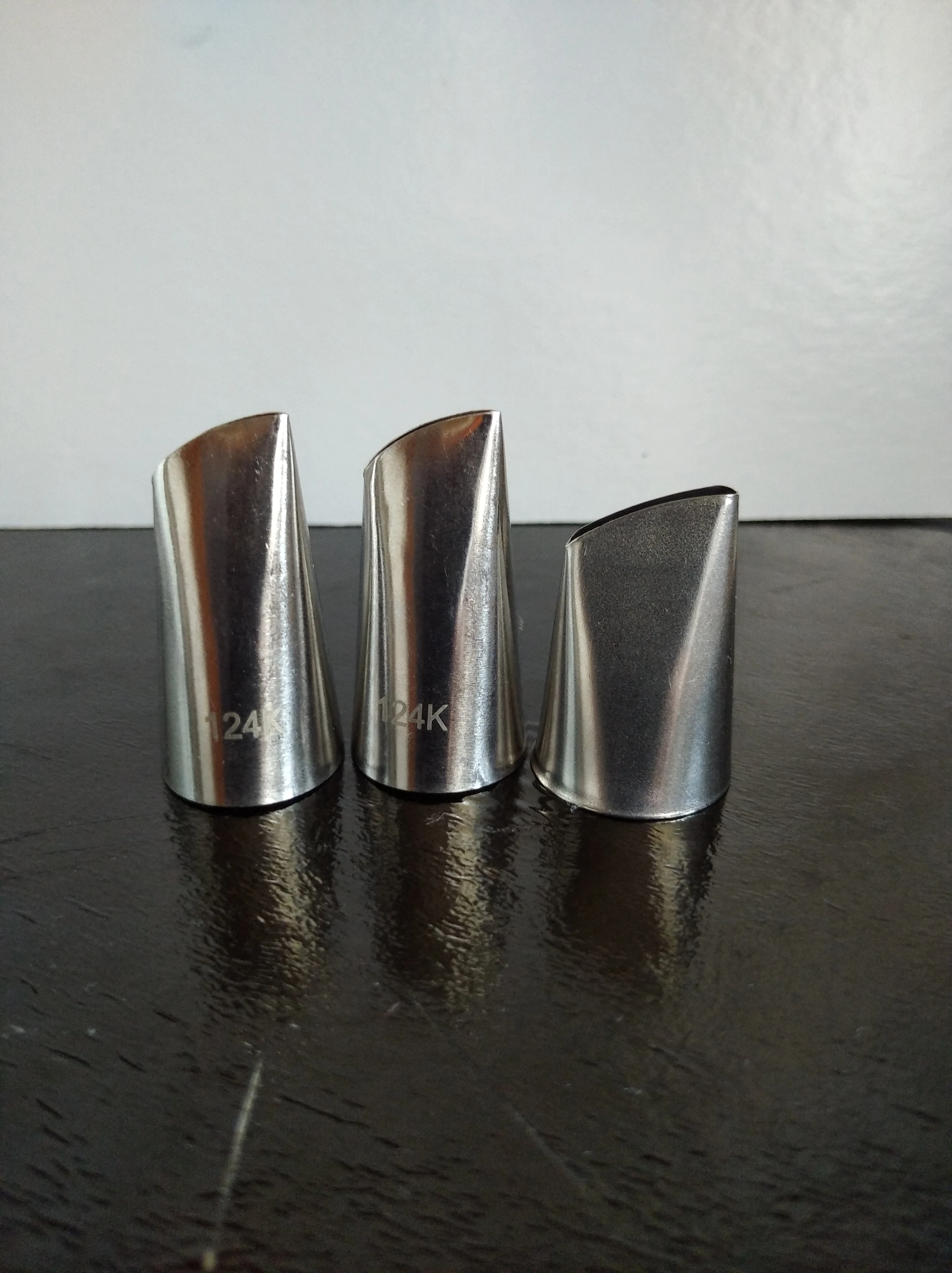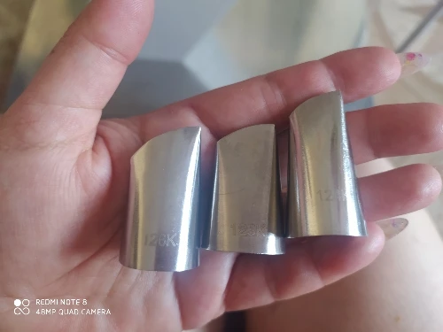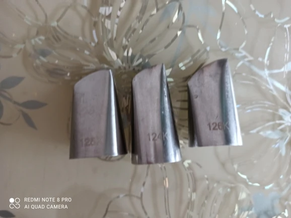 В принципе, нормальные насадки. Правда, две из них пришли в несколько помято-овальном состоянии, 124к и 126к. Звезды снимать не буду, думаю, на функциональность их оригинальная форма не повлияет. Выправить руками не выходит, металл на совесть, очень прочный и толстый. Третья насадка, без номера, видимо, должна изображать 125к, совершенно ровненькая, кругленькая, и такая же крепкая, как ее подруги по посылке. Швов нет, насадки гладкие. Продавцу спасибо, эти насадки мне были очень нужны.