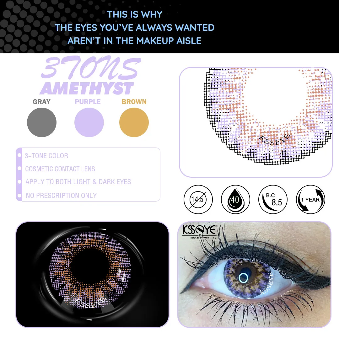 Толщина центра: 0,06 мм Основание кривое: 8,5 мм Диаметр: 14,5 мм Материал линз: хема Цвет линз: 3 тона Твердость линз: мягкая Линзы только для цвета глаз, а не для оптических линз, вы не можете выбрать мощность. Посылка включает в себя: 2 шт./пара контактные линзы и Контейнер Бесплатная доставка